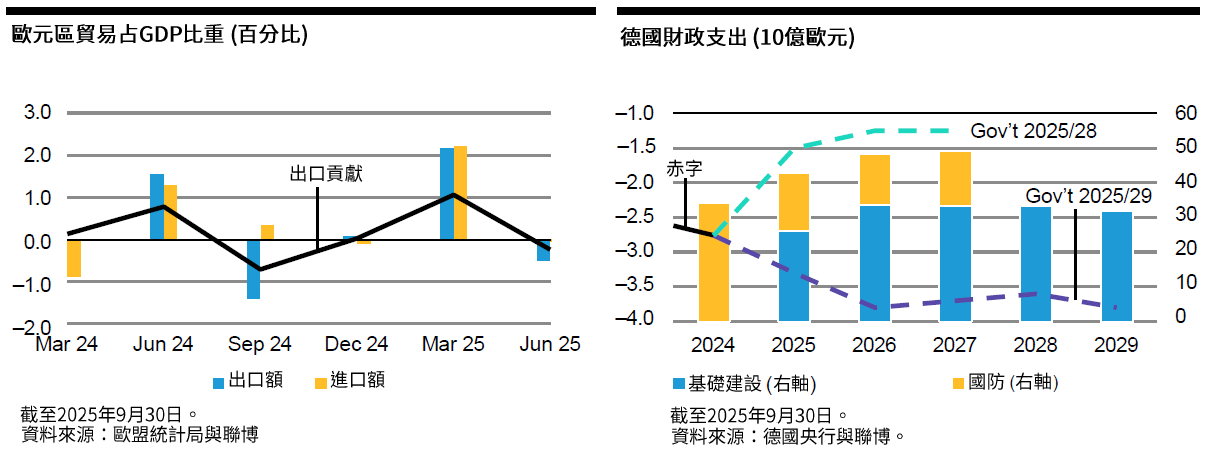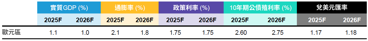 觀察美國以外地區,各國央行已超前部署,藉以緩和關稅對全球經濟的衝擊。歐洲與多數新興市場的央行陸續降息。如聯博上季所述,除了政策寬鬆之外,最終關稅亦不如4月初原先版本嚴峻,預計使得全球經濟溫和、而非劇烈轉弱,目前情況亦似乎如此。聯博小幅上調2025年歐洲經濟成長預測,但原因與內需大致無關,而是明年預計出現轉捩點,經濟將加快成長步調。