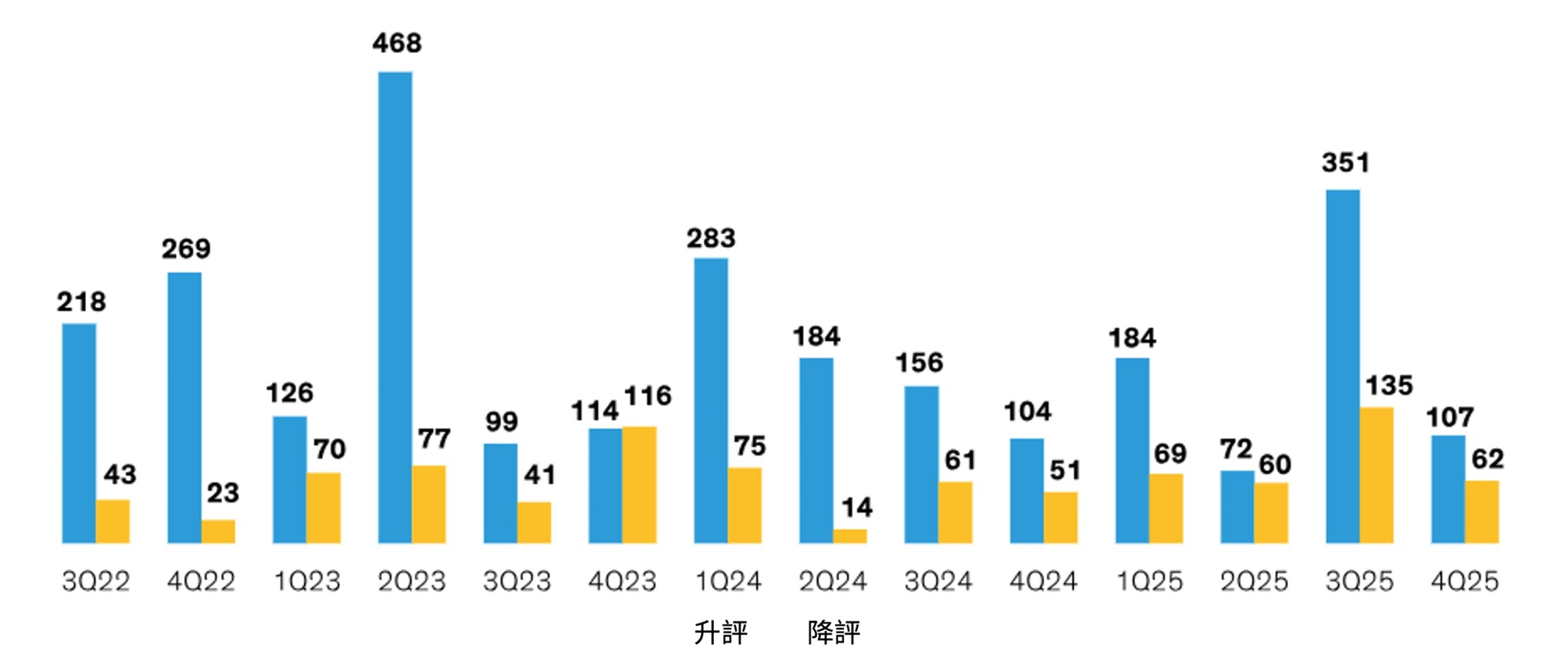 圖一:投資等級債市場近期出現升評多於降評