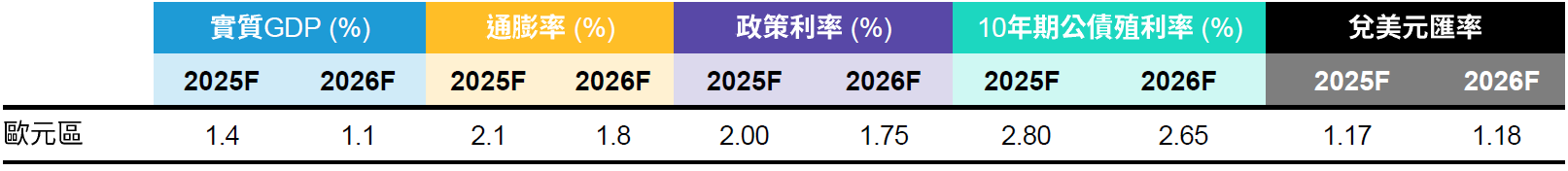 歐洲方面,財政政策將是2026年的議題焦點。德國擴大支出計畫是2025年的主要經濟利多,現在正值能否落實的關鍵時刻。倘若財政計畫如預期推動,將成2026年經濟成長的一大支撐;反之,經濟成長與市場氣氛可能轉弱。此外,歐洲仍在因應全球關稅措施的過程。中國進口商品壓低物價,固然有利於歐洲央行積極降息,但也為歐洲製造業帶來利空。變數紛陳下,聯博認為歐洲央行可能再降息一、兩次,尤其是歐元維持相對強勢的情況下。
